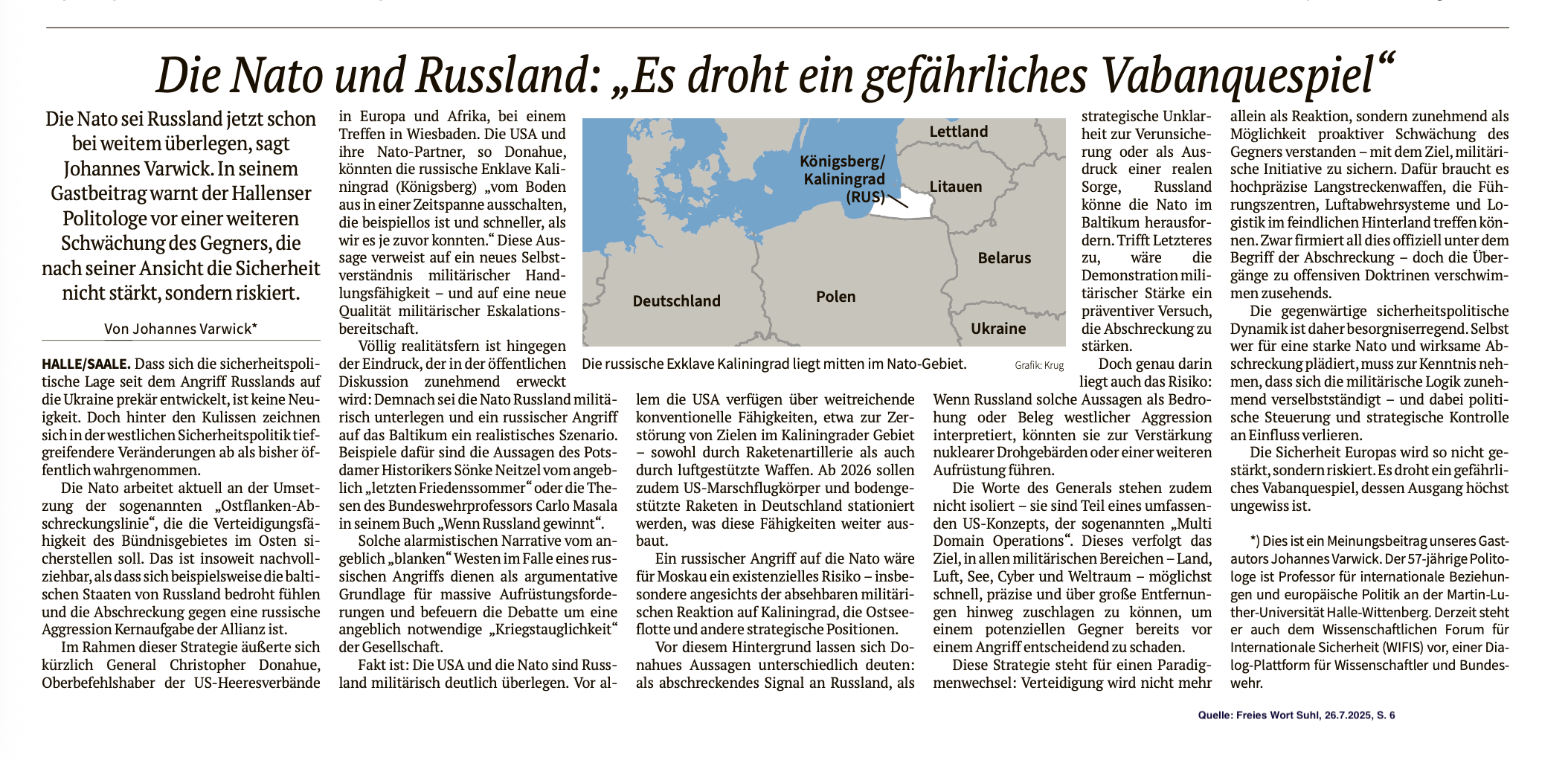 • In der Neuen Zürcher Zeitung habe ich einen Beitrag zum Thema „Kernfragen zur NATO-Strategie“ veröffentlicht.