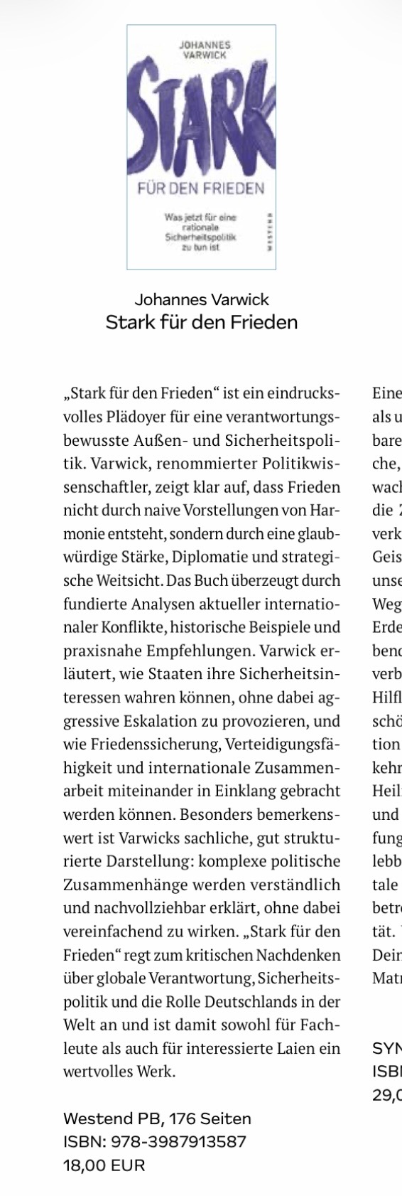 - Mit dem Verleger des Westend-Verlages spreche ich über mein Buch „Stark für den Frieden“ und die internationale Sicherheitspolitik (08.03.2026).