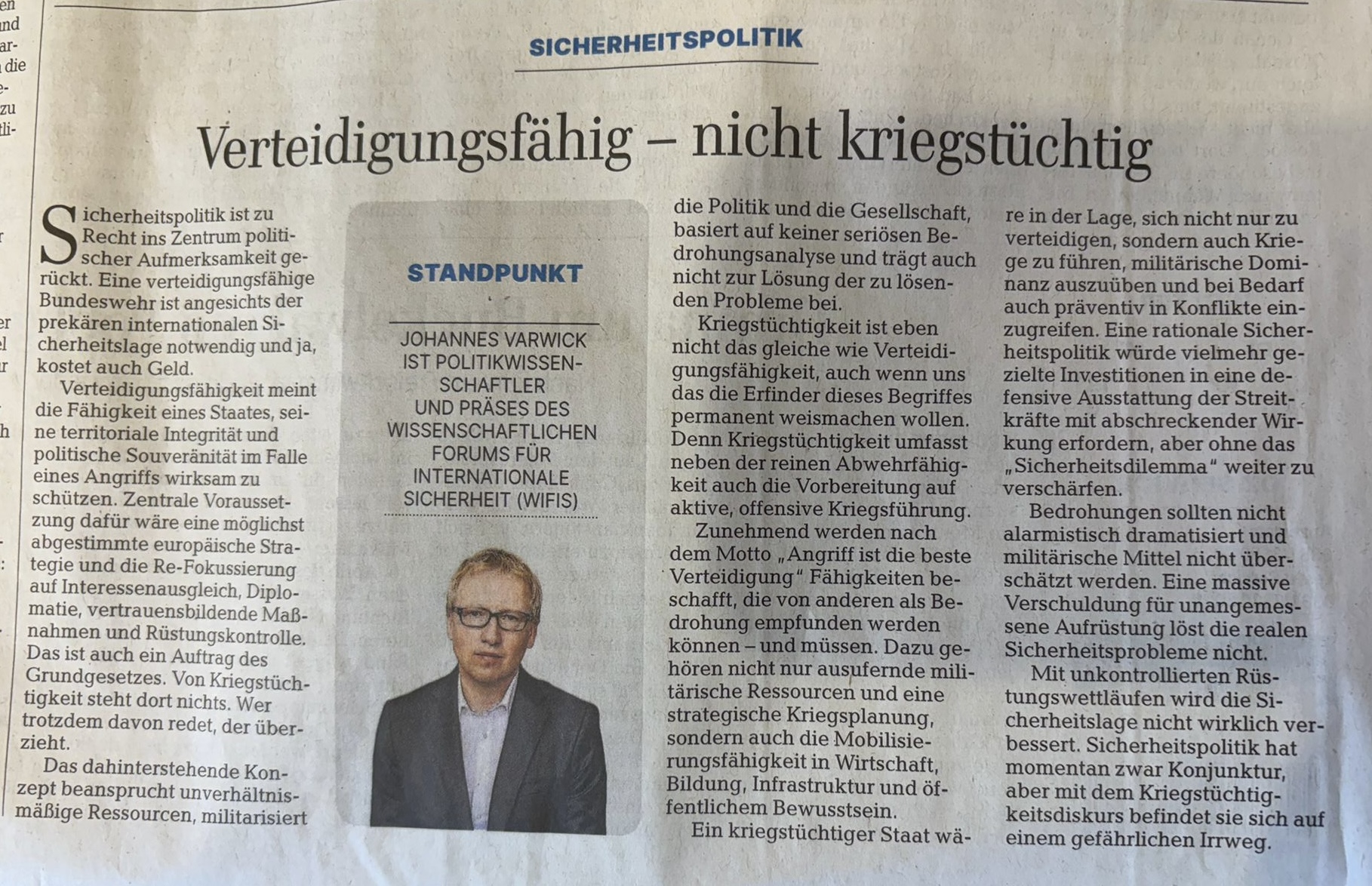 - Ich bin in Berlin als Nachfolger meines geschätzten Kollegen von der UniBW Hamburg, Michael Staack, zum Präses des “Wissenschaftlichen Forum internationale Sicherheit” (WIFIS) gewählt worden und freue mich auf die Arbeit mit dem neuen Vorstand und den wissenschaftlichen Austausch. Demnächst gibt es hier weitere Details dazu (30.05.24).